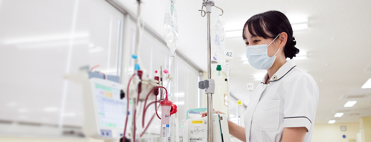 腎センターでは血液透析という特殊な治療を続ける患者さんを多職種で支援し、一緒に悩みながらよりよい看護ができるよう日々関わり続けています。また、透析室は優しく頼りになる先輩看護師が多く、看護において多くのことを学ぶことができます。